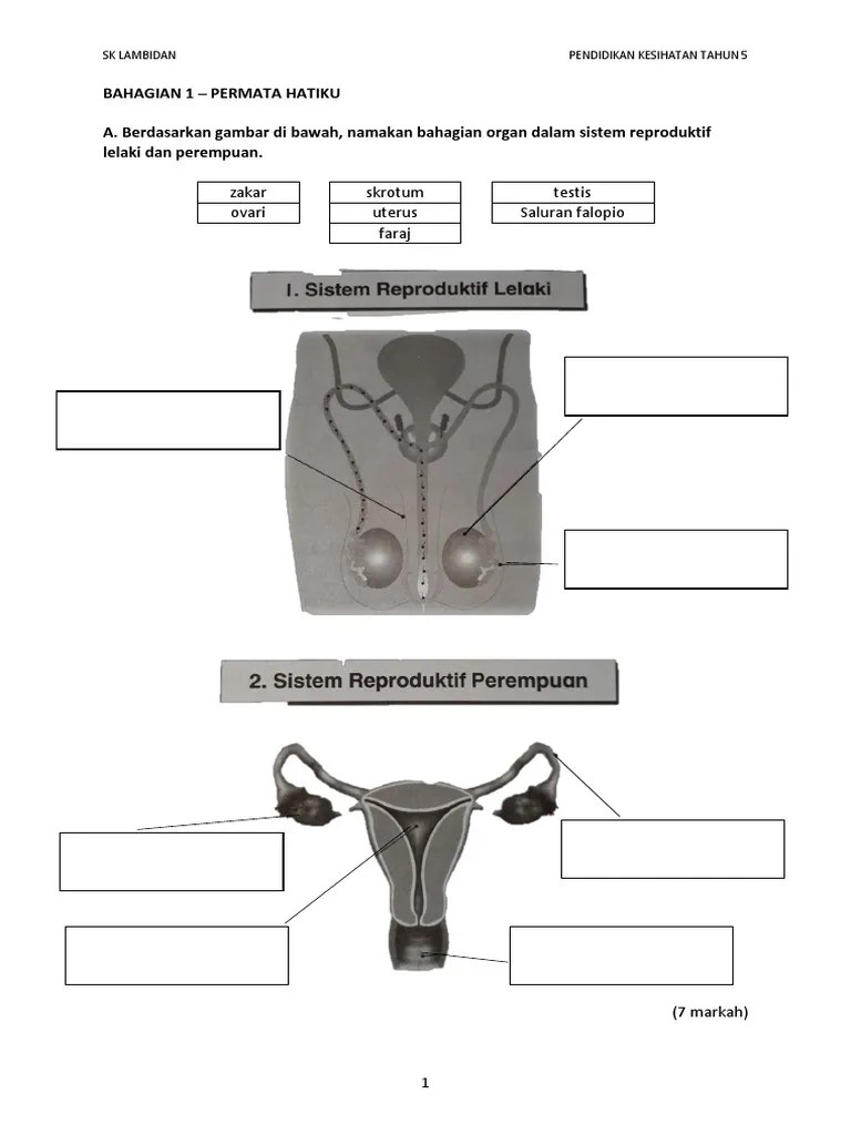 Play this game to review physical ed. 5 sistem reproduktif lelaki dan perempuan lelaki perempuansperma testis zakar glans zakar skrotum otak ovum tiub. Sebagai seorang yang sedang meningkat remaja, kita perlu tahu cara ______ pengaruh dalaman dan luaran yang boleh . Kesihatan fizikal kesihatan diri dan reproduktif standard 1.1 mengetahui dan memahami pertumbuhan . Pendidikan kesihatan tahun 5 (2021) : Pendidikan kesihatan tahun 5 (sistem reproduktif manusia).